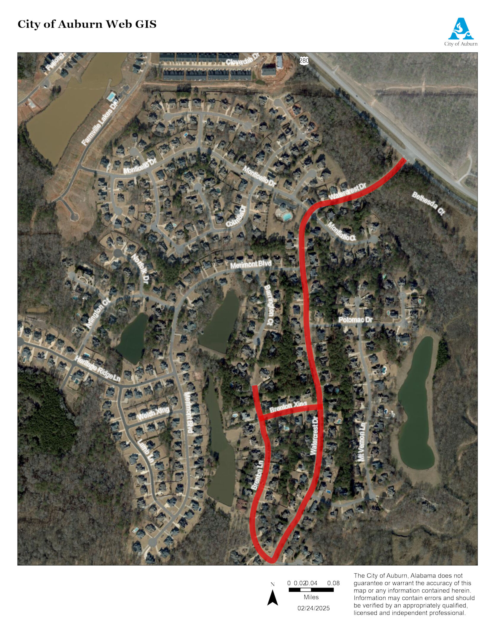Milling began on Brenton Crossing today, Feb. 24. When Brenton Crossing is complete, the contractor will resurface and pave Watercrest Drive from Highway 280 to Brenton Crossing. Monticello Drive will not be included in this paving project.