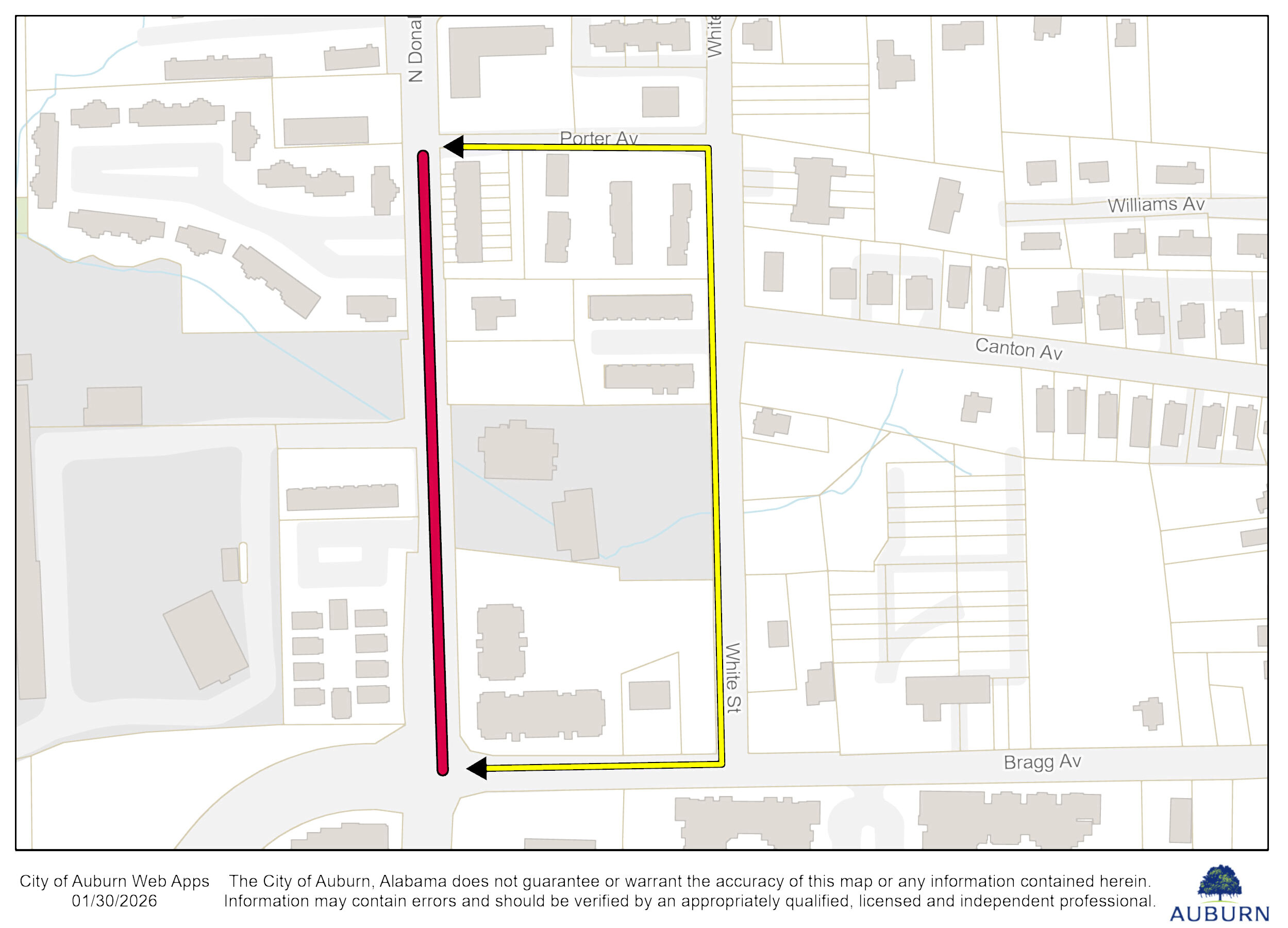 AUBURN, Ala.- A closure of North Donahue Drive between Porter Avenue and Bragg Avenue is expected Feb. 3 for sewer maintenance. The closure is expected to take place from 6 p.m.-11 p.m. A detour will be in place from Porter Avenue to Bragg Avenue by way of White Street.
